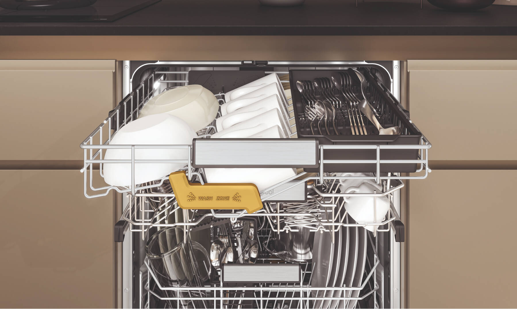 * Na podstawie danych o pojemności urządzeń 5 wiodących marek, maj 2023.Wyjątkowy na rynku pod względem dodatkowej przestrzeni, jest w stanie zmieścić o wiele więcej niż sztućce.