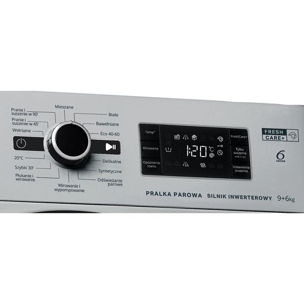 Cechy pralko-suszarki wolnostojΔ…cej Whirlpool: kolor srebrny. WyjΔ…tkowa pojemnoΕ›Δ‡ bΔ™bna wynoszΔ…ca 9,0 kg. Przestronna pojemnoΕ›Δ‡ suszarki wynoszΔ…ca 6,0 kg. WyjΔ…tkowa technologia 6-ty ZmysΕ‚ stale monitorujΔ…ca poziom wilgoci wewnΔ…trz bΔ™bna, chroniΔ…ca odzieΕΌ i zapewniajΔ…ca idealne rezultaty prania i suszenia. Szybkie i skuteczne wirowanie z prΔ™dkoΕ›ciΔ… 1400 obrotΓ³w na minutΔ™.
